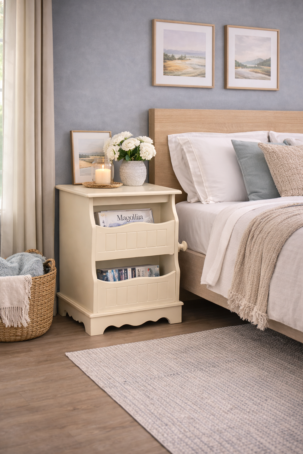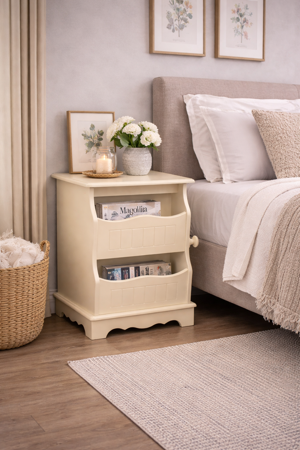 - Revistero de diseño clásico con acabado blanco/crema